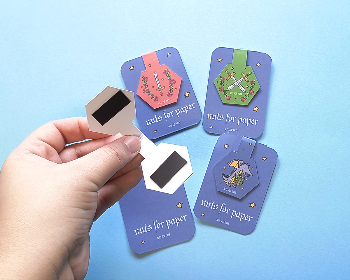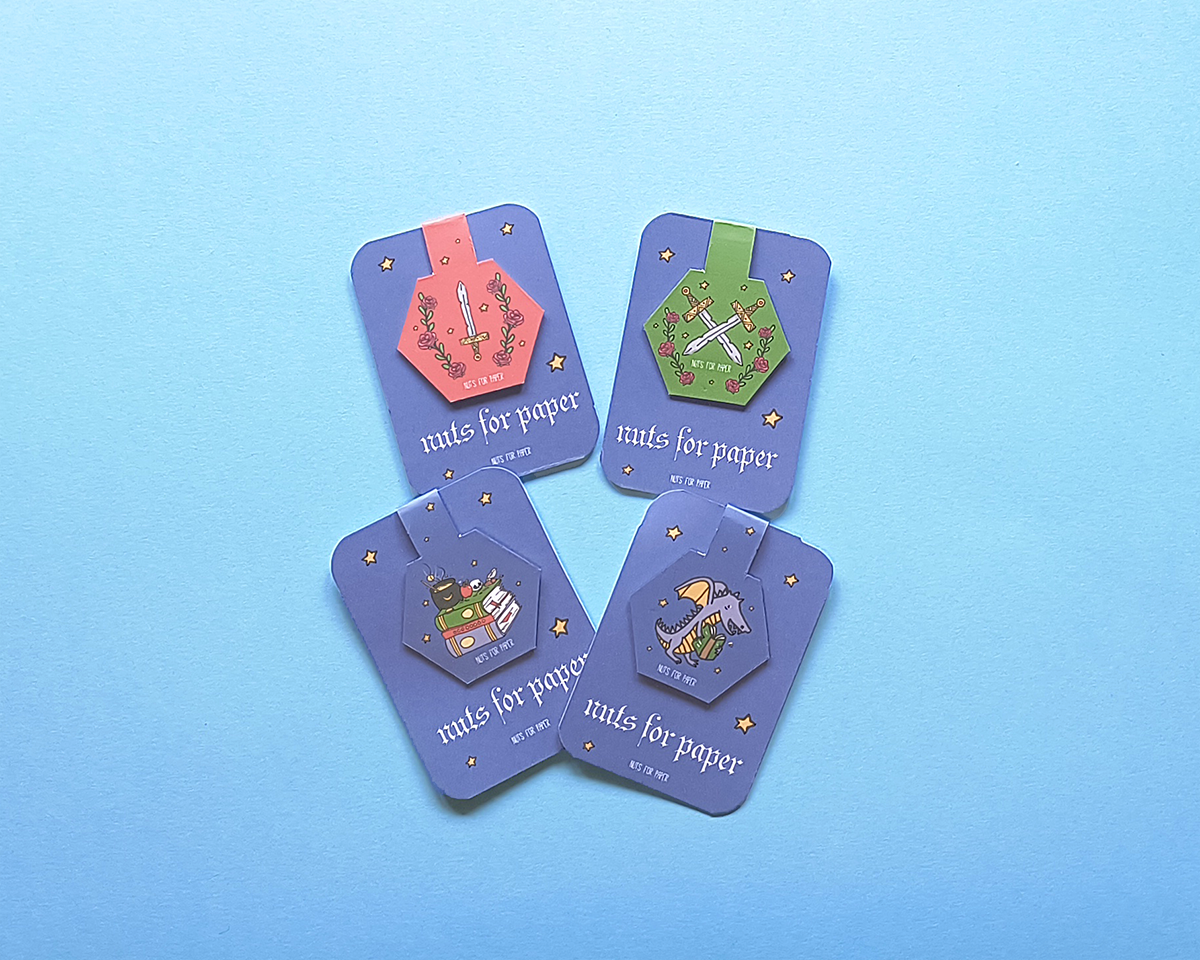 Cada Marcador de Livros é embalado com um cartão como o da imagem.